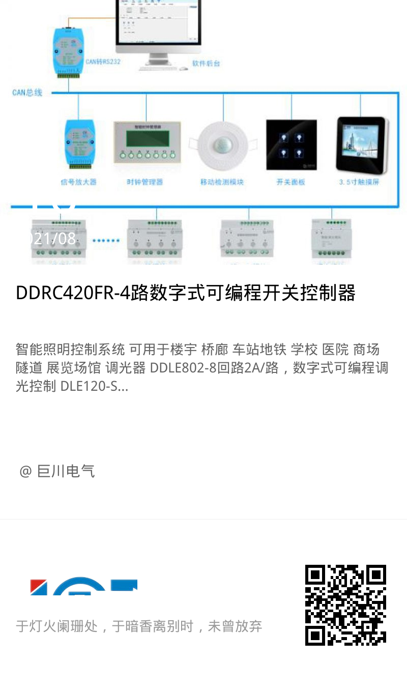 巨川電氣智能照明模塊面板,包含2鍵、4鍵、6鍵、8鍵、12鍵等類型,通訊采用R485總線通訊方式,自帶場景控制,適合智能開關模塊與智能調光模塊等配合使用,具有遠程編程和管理功能。智能照明控制模塊是以微處理器和現代電力電子技術開發為基礎開發的高性能產品,能對照明電控實行監控和操作,改善照明電控的負荷及故障,減少維護費用,降低工作人員維護工作量,操作簡單、功能強大。