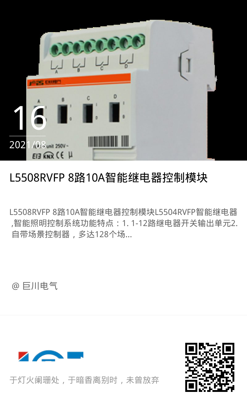 巨川電氣L5508RVFP 8路10A智能繼電器控制模塊
