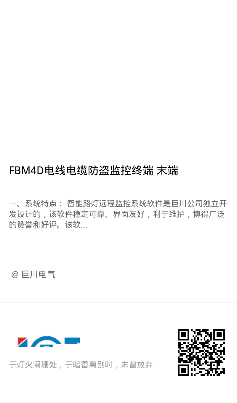 9. FBM4D電纜防盜報警,電纜被割斷、變壓器配電柜非法開門時,發出報警,可迅速確定報警位置和故障電纜,全天候24小時監控,白天路燈電纜無電時也可監控。