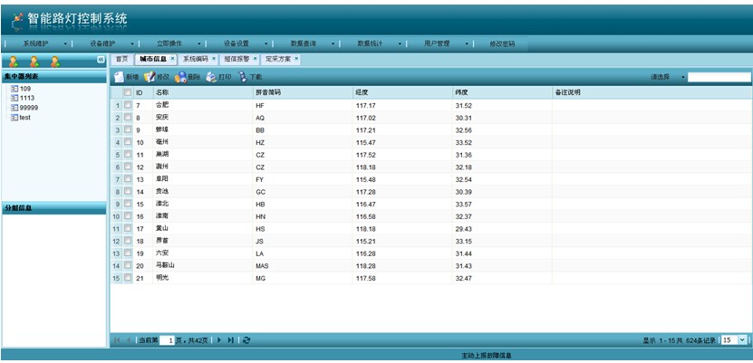 (4)實現對單燈進行開關和連續調光,可以一鍵開啟全城路燈;可以分區、分組進行監控;
