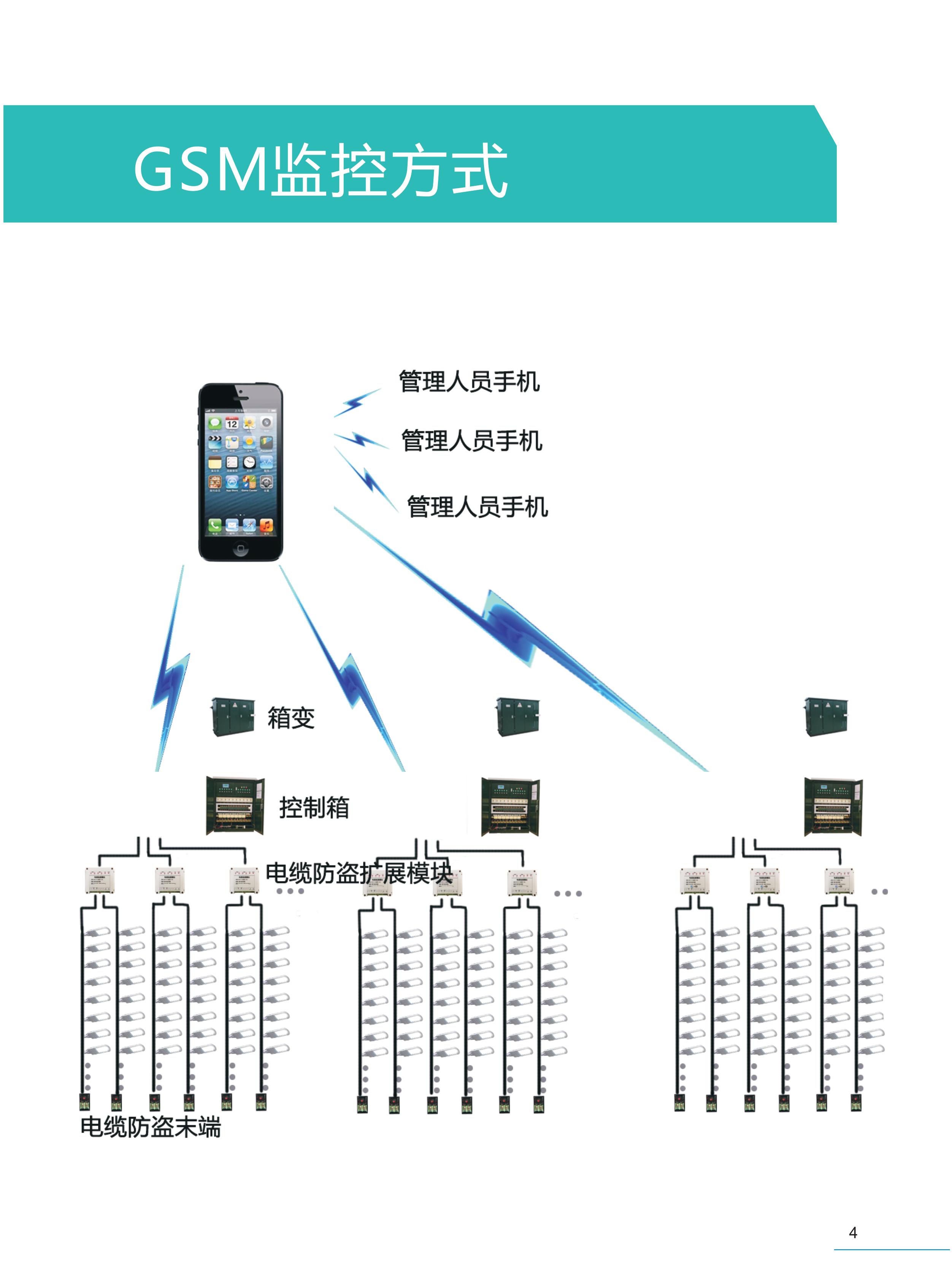 路燈照明電纜防盜裝置采用的GSM電線電纜防盜報警系統。是利用GSM短信息數據傳輸模式及語音功能平臺完成智能報警數據遠程傳輸及控制,防止供電設備和電纜線路的被剪斷、盜竊和破壞。該軟件將路燈(亮化燈、廣告燈、裝飾燈)燈不同燈型的監控和數據采集、處理融于一體。通過群控或是單控實現不同燈型的控制,也可以根據不同的時間(經緯度控制、星期節假日、全夜燈、半夜燈)和光照度進行控制。分主機和從機使用。主機可指定安裝在監控中心本機可獨立使用,亦可與接警聯網使用。