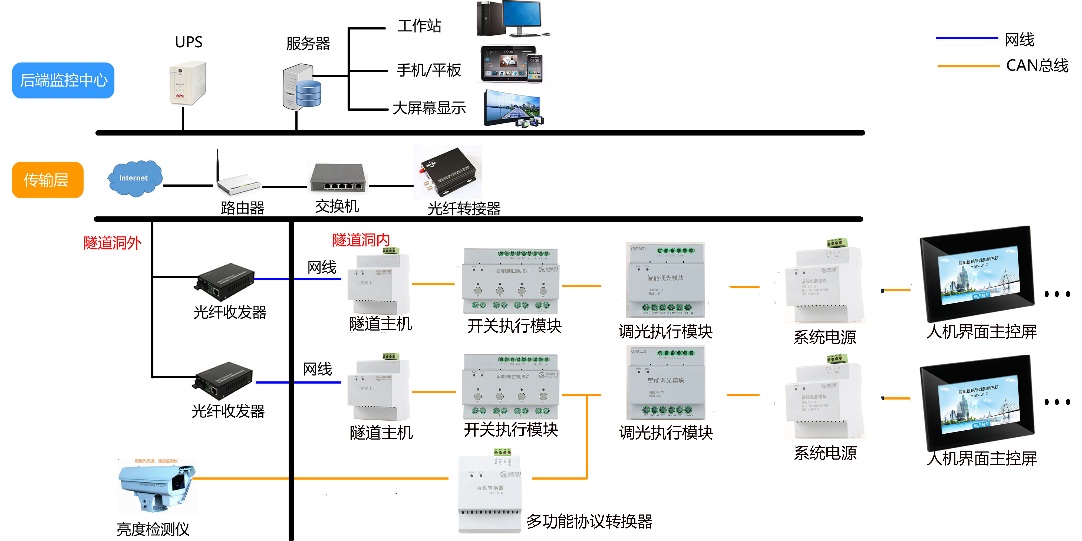 根據《公路隧道照明設計細則》(JTG/T D70/2-0l-2014)可靠、先進的照明控制是確保隧道安全運營及節能的重要手段。 通過照明調光控制,使亮度水平更加符合實際的車流量和洞外亮度情況,從而達到安全運營和節能降耗的目的,因此公路隧道照明應進行調光控制設計。本次更換工程在原有控制模式基礎上,增加浙江巨川無級調光控制系統: