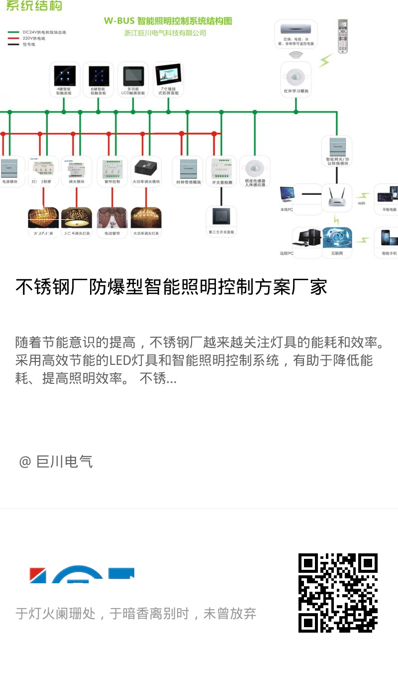 巨川電氣基于物聯(lián)網(wǎng)智能感知、無線通訊等技術,通過大量智能照明控制終端,實時、準確、全面地監(jiān)控廠區(qū)的照明設備運行狀況,實現(xiàn)對工廠不同性能車間室內(nèi)外照明設備的智能化控制以及人員工作安全得到進一步保障。