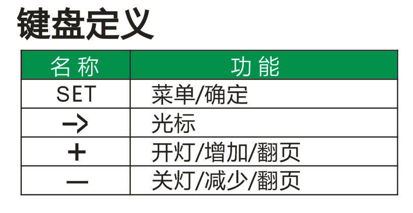 注:系統設置/時控設置/星期設置/光控設置 操作簡介,在查詢狀態下,通過‘+’‘-’鍵,可以翻頁選擇查詢不同回路的參數;按‘SET’鍵進入修改狀態,移動光標到目標位置,通過‘+’‘-’鍵,修改目標值,按‘SET’進行數據的保存,如在查詢狀態下,則退出返回到工作頁面。