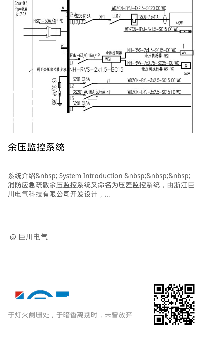 消防應急疏散余壓監控系統又命名為壓差監控系統,由浙江巨川電氣科技有限公司開發設計,為了確保疏散通道的余壓在火災發生時能夠處于有效的受控狀態,既能阻止煙氣的擴散,又能使逃生者比較輕松打開防火門逃生,保護人員安全疏散,沃思智能嚴格按照國家標準GB1251-2017《建筑設計防火規范》和《建筑防排煙系統技術規范》,研發J-BUS余壓監控系統。該系統是集工業計算機技術、通訊、抗電磁干擾、數字傳感技術及工業現場總線控制技術于一體的智能化系統,可以對疏散通道余壓的工作狀態進行24小時實時自動巡檢,對處于非正常狀態的余壓給出報警提示。在發生火情時,該系統可以自動調控機械加壓送風系統的送風量,也可在消控中心對其進行遠程控制。采用高精度美國進口數字傳感器芯片(精 度:±1.0%F.S),人機友好界面,操作簡單,強大的兼容性,完美對接第三方系統平臺。